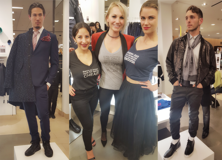 The event was held on the fourth floor of Bloomingdale’s, San Francisco. Upon entering the fashion zone I was eloquently blinded by white glowing hues, esteemed black, and a dashes of color intermingled. My first encounter was Nate. Nathan Johnson is Co-founder and Chief Operations Officer. My impression of Nate was nothing but positive. He was welcoming and warm and had no problem explaining logistics. Nates demeanor and clean cut good looks alongside his intelligent vocabulary makes him a great candidate for success. Nates shy smile and polite as all hell’s energy contrasted his tagline on his business card which reads: You are investing in yourself. Have some fucking self-respect.” I knew this was a man that’s easy to love. Any man who you can bring home to mama and then who can put you in your fashion place is “the one” Well wishes to the lucky person who lays their head next to his at night!