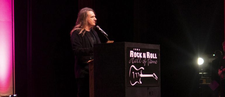 Grammy Award winning Megadeth bassist David Ellefson was inducted into the IOWA ROCK N’ ROLL HALL OF FAME over the weekend, in a ceremony Sunday in Okoboji, IA, presented by the Iowa Rock N’ Roll Music Association. David, a native of nearby Jackson, MN, spent his formative years, pre-Megadeth, performing on the club circuit in Iowa, Minnesota, and South Dakota. Ellefson was inducted in the “individual artist” category, for his achievements both as a recording artist and performer, and as a producer, writer, and entrepreneur, including his work with EMP LABEL GROUP, ELLEFSON COFFEE CO, ETA – Ellefson Touring Agency, and the recently relaunched COMBAT RECORDS.