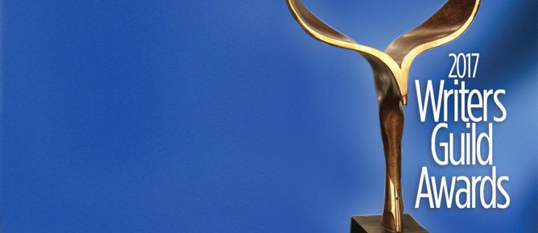 The Writers Guild Awards honor outstanding writing in film, television, new media, videogames, news, radio, promotional, and graphic animation categories. The awards will be presented at concurrent ceremonies on Sunday, February 19, 2017, in Los Angeles at the Beverly Hilton and in New York City at the Edison Ballroom. For more information about the 2017 Writers Guild Awards, please visitwww.wga.org or www.wgaeast.org.