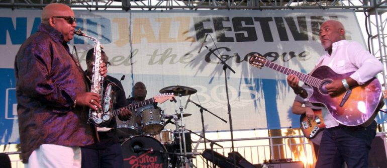 The 2nd Annual Oxnard Jazz Festival ended the day’s celebration with smooth jazz giants, Gerald Albright and Jonathan Butler. What a fabulous climatic finale because this was the last stop on their summer tour. The two came out like roaring lions on their instruments, playing so strongly as if this was their first performance. It was totally thrilling to be up close and watch these two brilliant men give their all. No one runs riffs as tightly and profoundly on the sax as Gerald Albright. Add some downtown funk and soul to that horn blowing and the unique reverb of his sound creates wonderful music. Jonathan Butler dug deep into his South African roots to bellow out such romantic, soulful songs that he intermixed a bit with his native tongue. He was truly mesmerizing to watch. Of course, he brought some church to the music and sang from his heart and soul about Jesus. The audience rocked and rolled with inspiration. As the sun set gloriously in the western sky over the Pacific, the Oxnard Jazz Festival ebbed to a supreme closing.