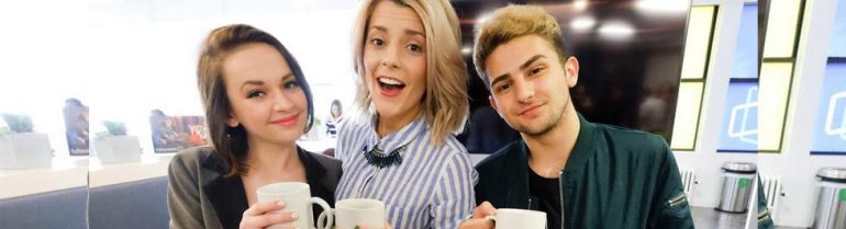 (L-R) Alexis G. Zall (star of Fullscreen’s new daily programming show “Zall Good with Alexis G. Zall”), Grace Helbig (star of Fullscreen’s new original series “Electra Woman & Dyna Girl”) & TWAIMZ (star of Fullscreen’s daily sketch show “Party in the Back”) at Fullscreen’s SVOD unveiling event at Fullscreen’s NYC headquarters on April 25, 2016.